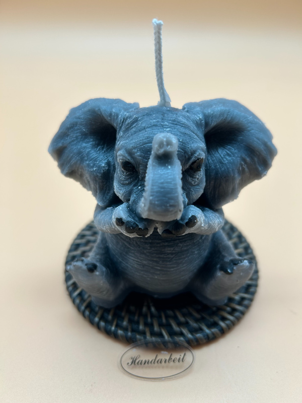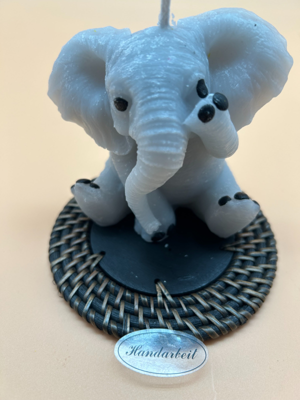 Diese Kerze besteht aus Paraffin und Stearinwachs und gibt es in verschiedenen Ausführungen. Rüssel nach oben und Rüssel nach unten.